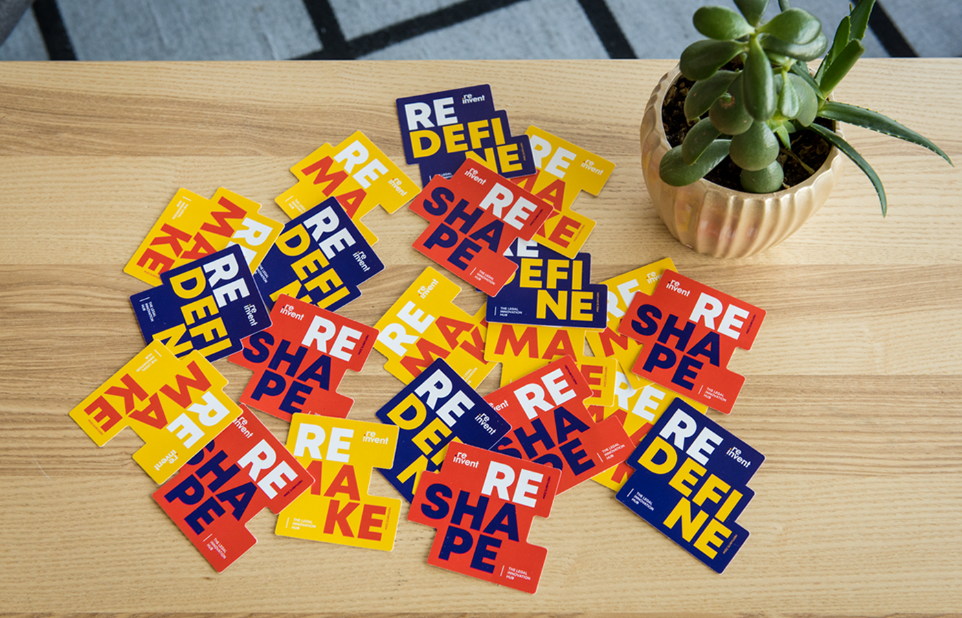 印刷材料每天都會(huì)提醒人們重新思考,改變和創(chuàng)新。 所有消息均以“ re”開(kāi)頭,這是律所標(biāo)志設(shè)計(jì)的基礎(chǔ)。