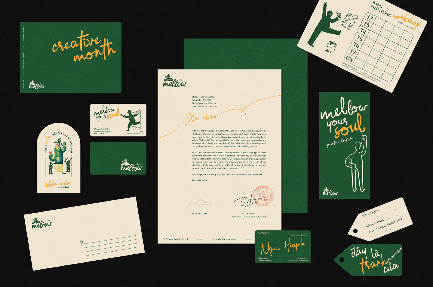 Mellow是越南西貢的一個新品牌形象設(shè)計,提供輕松的繪畫服務(wù)以及周末的輕柔音樂、超靈活的藝術(shù)空間、熱帶飲品等。來到 Mellow 時,您不必成為藝術(shù)家,您所需要的只是對藝術(shù)的興趣和以新方式表達自己的愿望。我們的座右銘是:“無論您的工作如何,客戶在 Mellow 的繪畫體驗質(zhì)量一直是我們的榮幸?!?