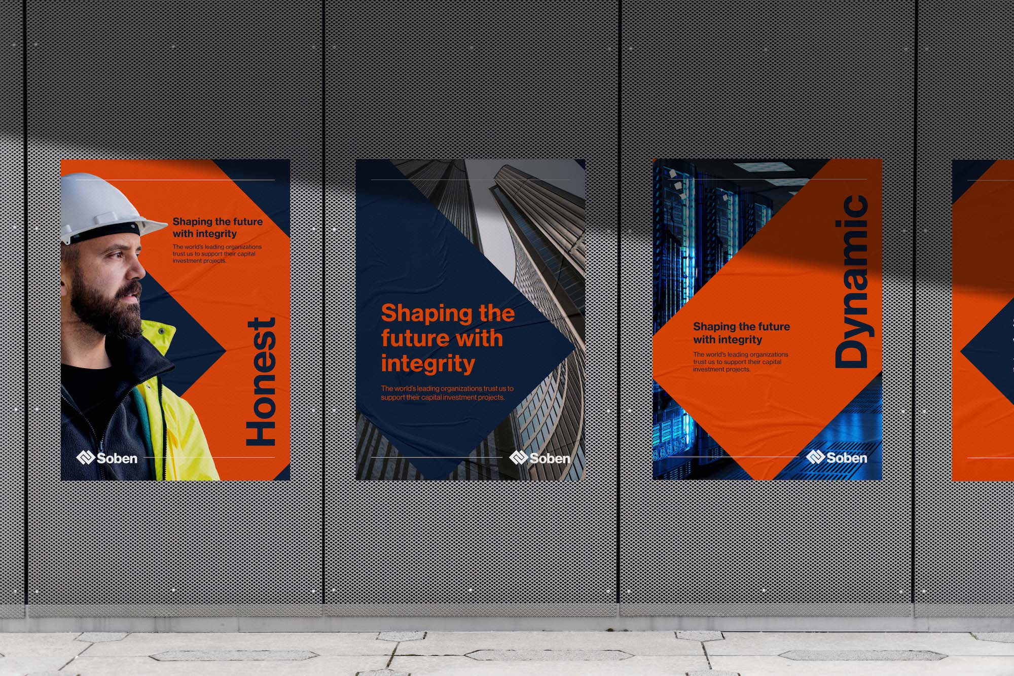 Soben 的新品牌標志設(shè)計突出了他們誠實、勇敢、活力、包容的新核心價值觀,并引入了新的口號“以誠信塑造未來”。誠信這個詞通過透明和道德支持了他們經(jīng)營方式的幾個方面,不從事任何開采自然資源的項目。標語還經(jīng)過精心設(shè)計,以平衡 Soben 的責任精神和目標精神,將強有力的建設(shè)信息與建立和加強與真實人物關(guān)系的原則相結(jié)合。