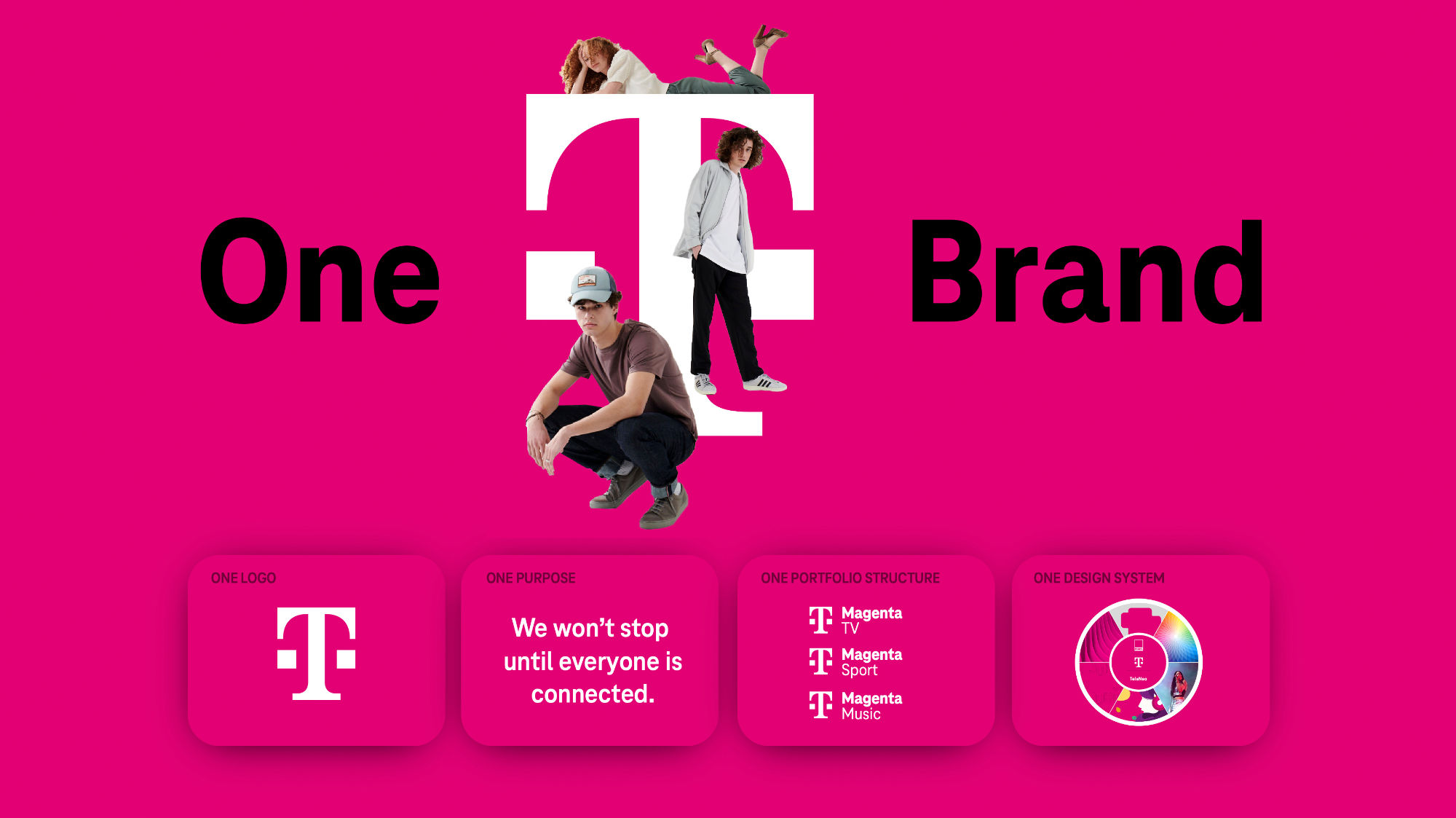 T標(biāo)志,無論是兩位數(shù)還是四位數(shù)字,都是一個強(qiáng)烈的標(biāo)志。一個更強(qiáng)大、更有價值的 Telekom 品牌資產(chǎn)是洋紅色。有趣的是,多年來,這種視覺核心元素也以產(chǎn)品名稱的形式出現(xiàn)在語言層面,見 MagentaTV 等。
