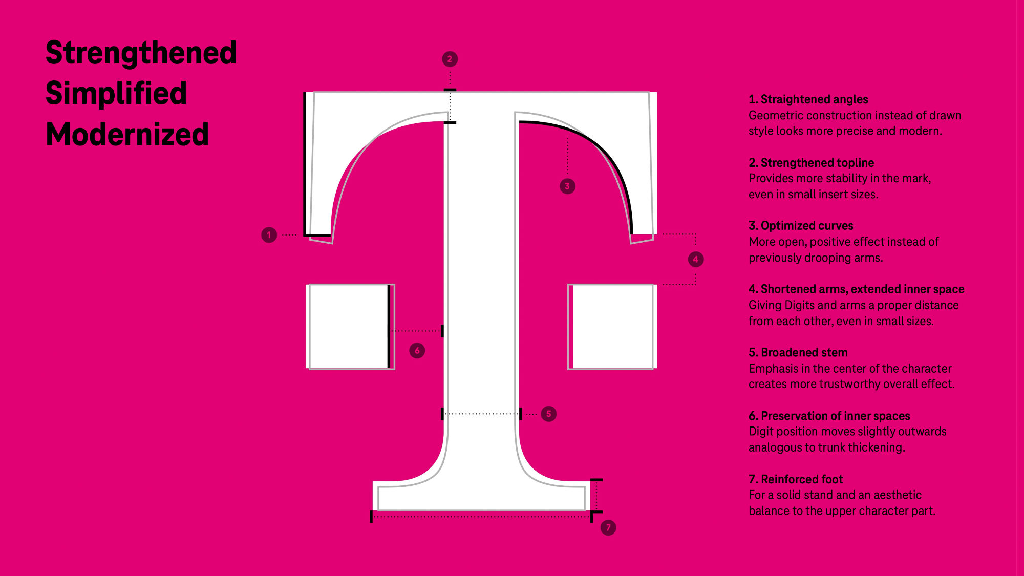 即使現(xiàn)在有兩位數(shù)字,T 標(biāo)志也是明確無誤的,顯然是 Telekom 品牌的發(fā)件人。與耐克、蘋果、梅賽德斯或奧迪等具有強(qiáng)大(廣告)影響力的其他品牌一樣,長期以來沒有必要顯示全名。T-signet 的減少創(chuàng)造了一個緊湊且對稱的標(biāo)志 - 在處理和可變性方面,在企業(yè)設(shè)計中沒有更好/更實用的解決方案。