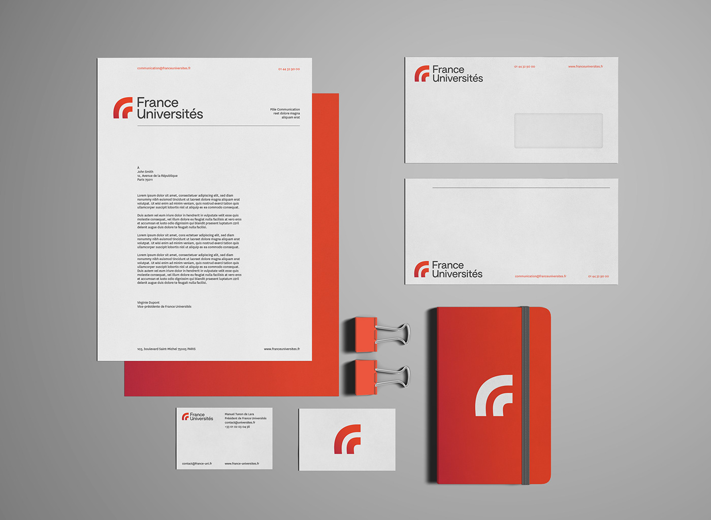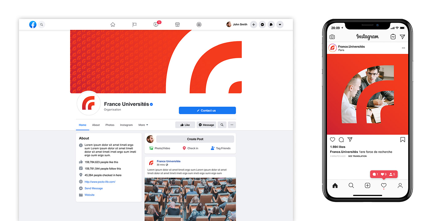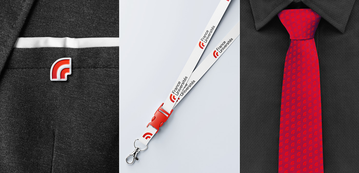 該標(biāo)志是一個(gè)有天賦的動(dòng)態(tài)形狀。它的機(jī)構(gòu)和充滿活力的紅色標(biāo)志著與以前的視覺(jué)識(shí)別藍(lán)色的突破。它簡(jiǎn)單而醒目的外形非常適合所有法國(guó)大學(xué)的傳播媒體。