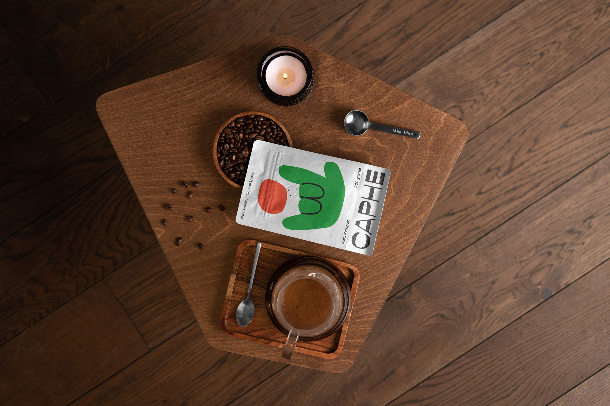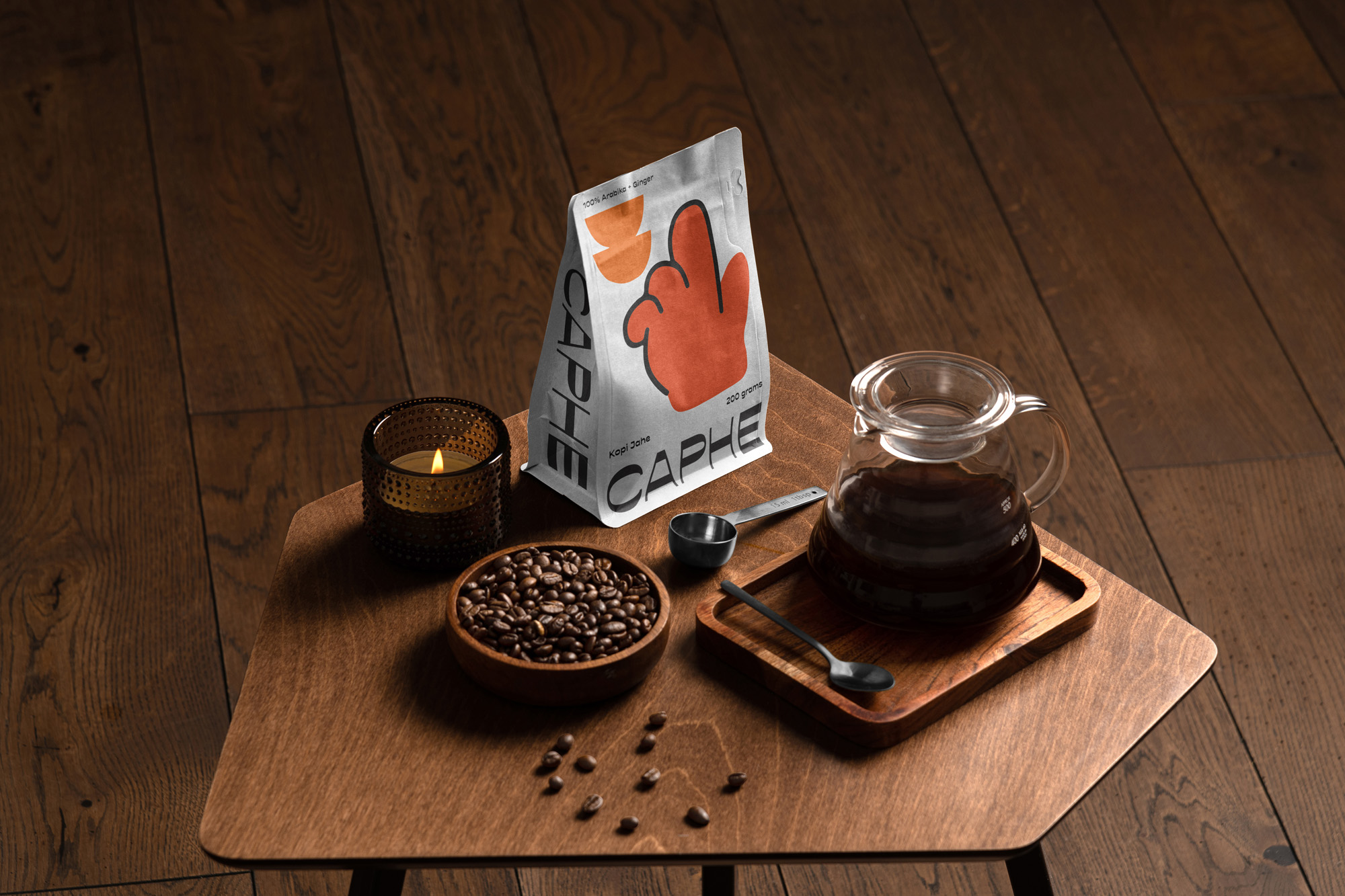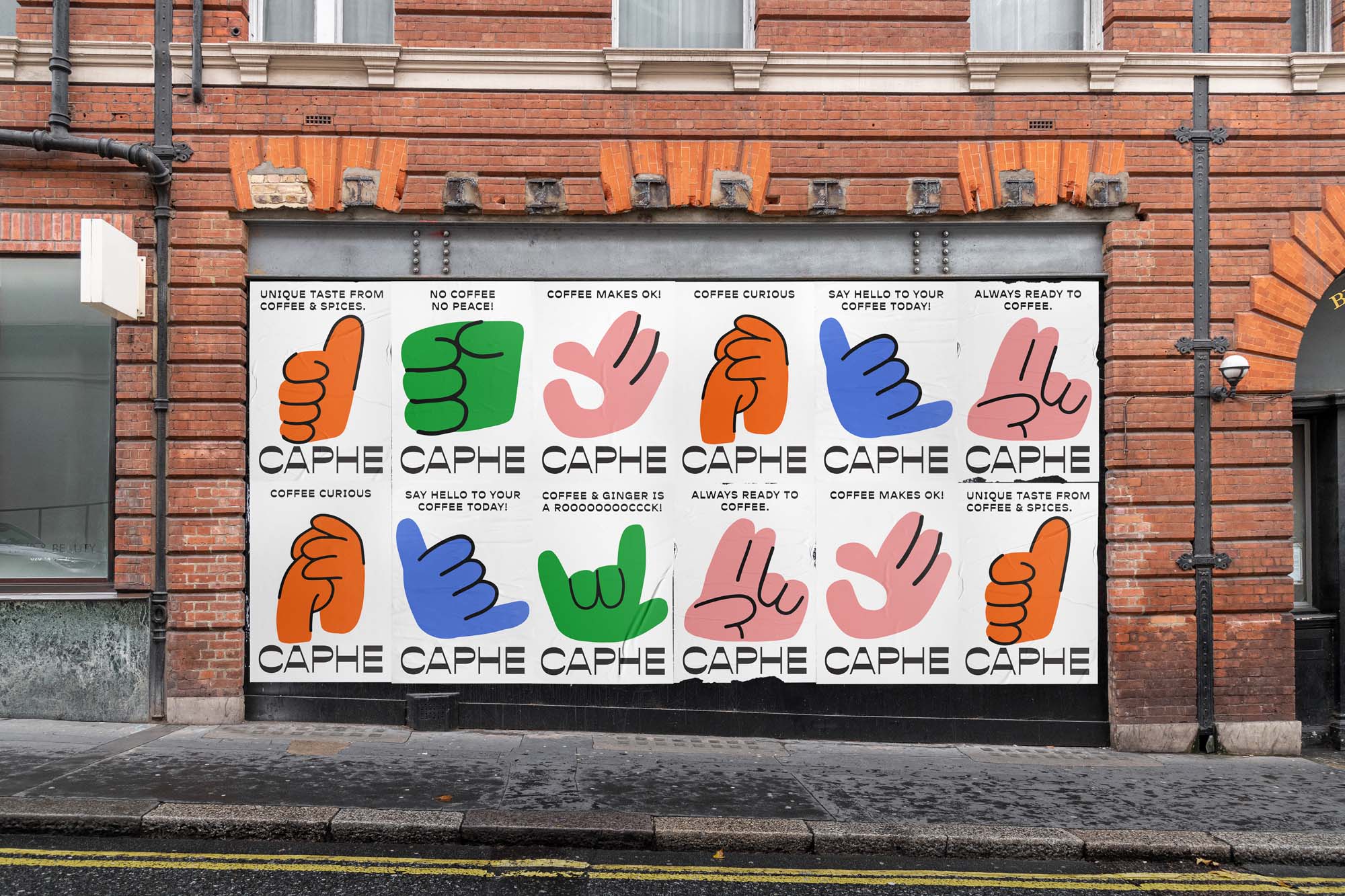 我們選擇Opposit作為Caphe的字體,這種字體是獨(dú)一無(wú)二的,字母的每個(gè)字符上都有粗而細(xì)的筆畫(huà)。在包裝設(shè)計(jì)中,我們?cè)噲D拋開(kāi)以咖啡為基礎(chǔ)的包裝設(shè)計(jì)思想。與大多數(shù)咖啡設(shè)計(jì)不同,姜汁咖啡自動(dòng)地以姜汁插圖為特色,這太普通和無(wú)聊了。我們?cè)O(shè)計(jì)了一個(gè)手勢(shì)的插圖,作為享受咖啡的滿(mǎn)足感的標(biāo)志。除了是包裝上的一個(gè)身份和設(shè)計(jì),這個(gè)插圖也是一個(gè)附屬于品牌的圖像。它與眾不同,獨(dú)一無(wú)二,引人注目。