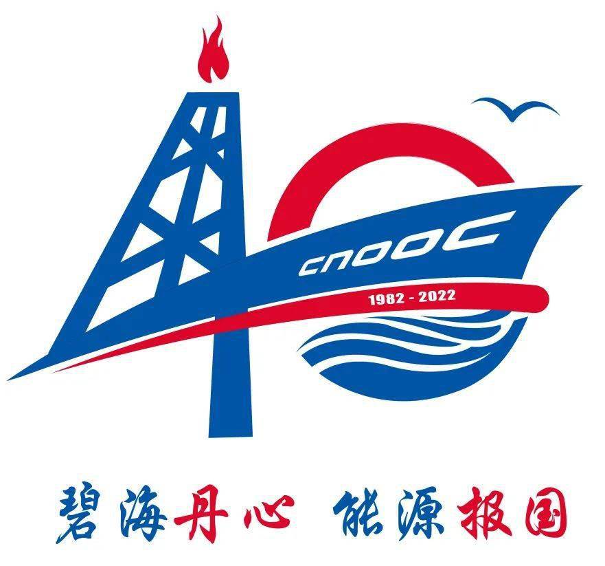 藍色外圈和波紋象征中國海洋,英文大寫字母CNOOC組成的紅色圖案有海上鉆井平臺托舉一輪朝陽的意象,寓意中國海洋石油事業(yè)欣欣向榮