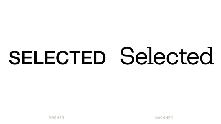 全新Selected標志的字標設計頗具特色。在時尚界,將不同的風格、時代、文化等元素巧妙地融合在一起,形成一套獨特的服裝,被稱為“混搭”。全新Selected標志在字體設計上也體現(xiàn)了這種風格的混搭。襯線和無襯線字母的組合,以及線條粗細對比迥異的字母(例如“d”和“e”)。這使得這一表達既經(jīng)典又充滿科技感,卻又不失一種奇特的冷漠。