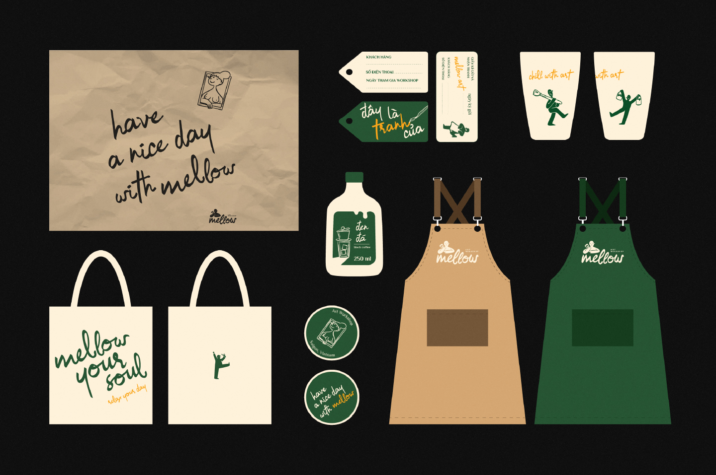 Mellow是越南西貢的一個新品牌形象設(shè)計,提供輕松的繪畫服務(wù)以及周末的輕柔音樂、超靈活的藝術(shù)空間、熱帶飲品等。來到 Mellow 時,您不必成為藝術(shù)家,您所需要的只是對藝術(shù)的興趣和以新方式表達自己的愿望。我們的座右銘是:“無論您的工作如何,客戶在 Mellow 的繪畫體驗質(zhì)量一直是我們的榮幸?!?