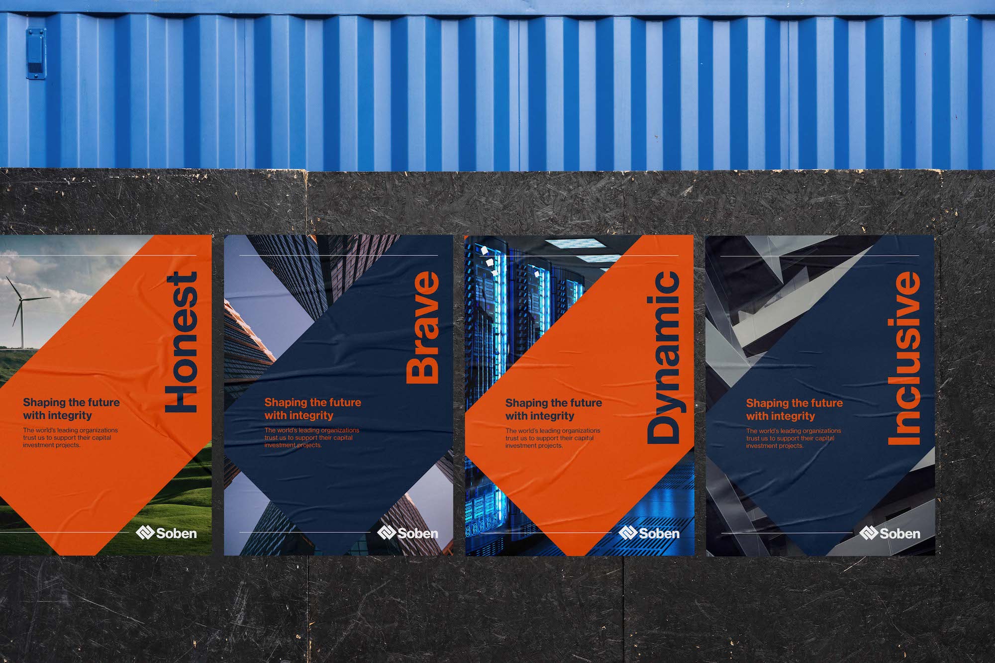 Soben 的新品牌標志設(shè)計突出了他們誠實、勇敢、活力、包容的新核心價值觀,并引入了新的口號“以誠信塑造未來”。誠信這個詞通過透明和道德支持了他們經(jīng)營方式的幾個方面,不從事任何開采自然資源的項目。標語還經(jīng)過精心設(shè)計,以平衡 Soben 的責任精神和目標精神,將強有力的建設(shè)信息與建立和加強與真實人物關(guān)系的原則相結(jié)合。